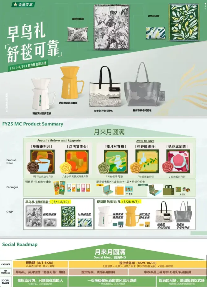 为了吸引顾客尽早购买,星巴克还会推出早鸟礼,送滤杯、托特包或者抱枕毯——从卖咖啡到做月饼到送包,每次餐饮店的「跨界」都堪称一场巨大的套娃,“一生二、二生三、三生万物”。