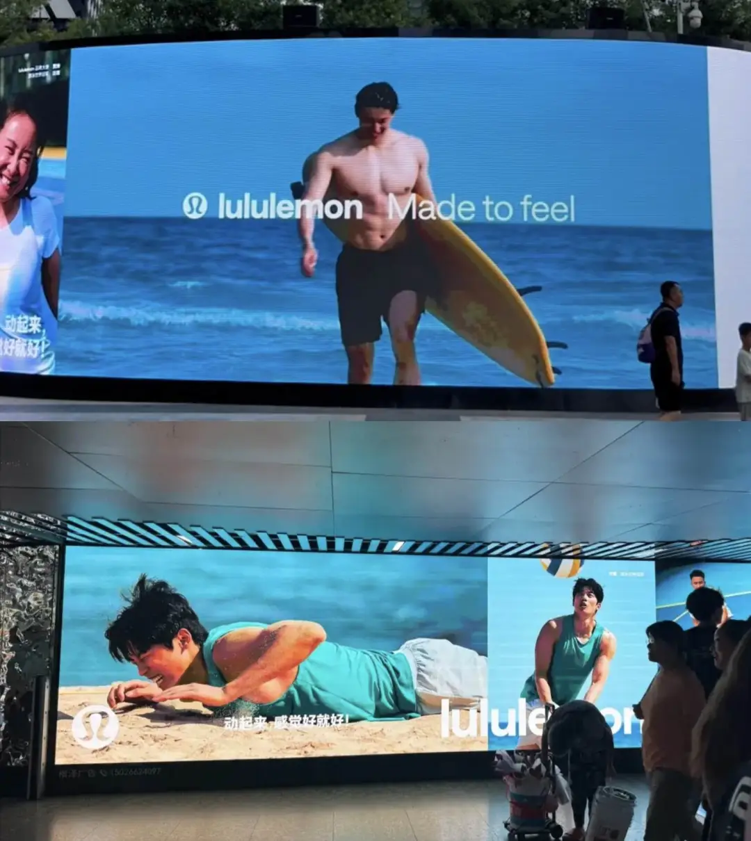 户外地广更是将汪顺阳光有型的特质放大,穿不穿都让路人忍不住多看两眼,把 Lululemon “运动+时尚”的品牌定位具象化了。