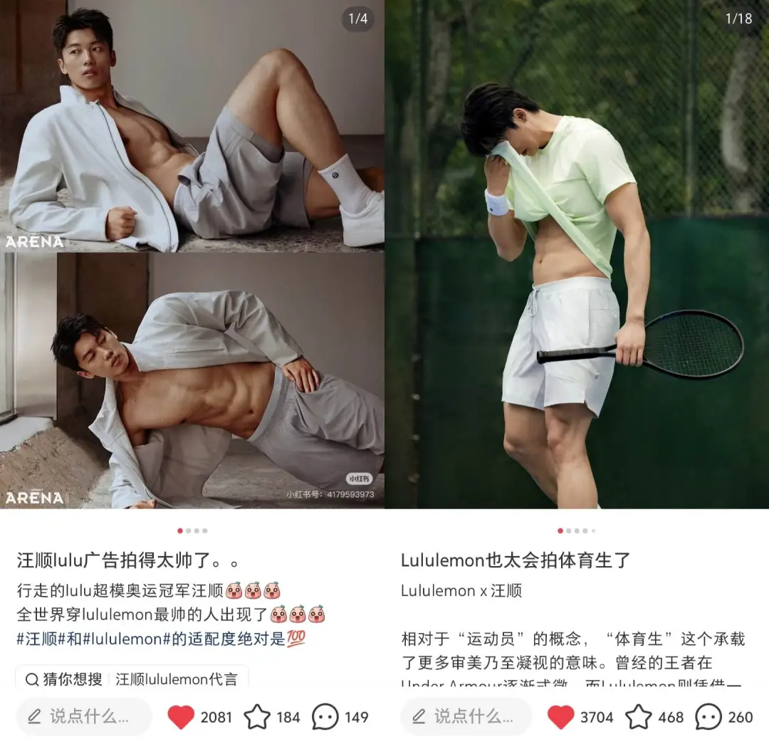 Lululemon一直被视为“女性瑜伽品牌”,在男性市场的存在感并不强。如何突破“只为女生设计”的刻板印象,成了品牌急需解决的传播问题。这次他们找来了最具身体美感的体育明星——游泳奥运冠军汪顺,用他自然流畅的体态去视觉化诠释“运动美学”。