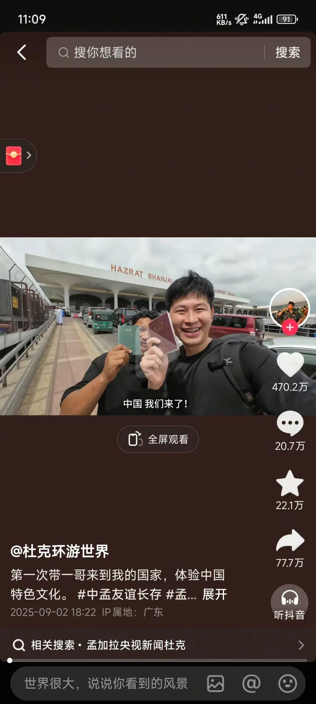 尤其是,今年 3 月杜克发布了离开孟加拉前与“一哥”故事最终章的视频,却意外出圈,甚至被中国驻孟加拉大使馆转发,杜克也因此一炮而红,截止目前这条视频收获了 573 万点赞。