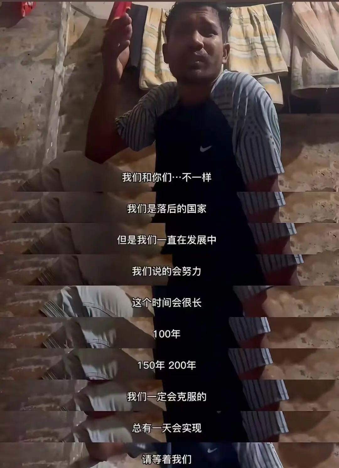 通过杜克的vlog,“一哥”讲述了自己的故事:每天蹬着破旧人力车穿梭在达卡街头,从清晨工作到深夜,赚的钱只够勉强养活一家五口,住的地方是 50 多个人合住的棚屋,甚至要打地铺,连被子都没有。