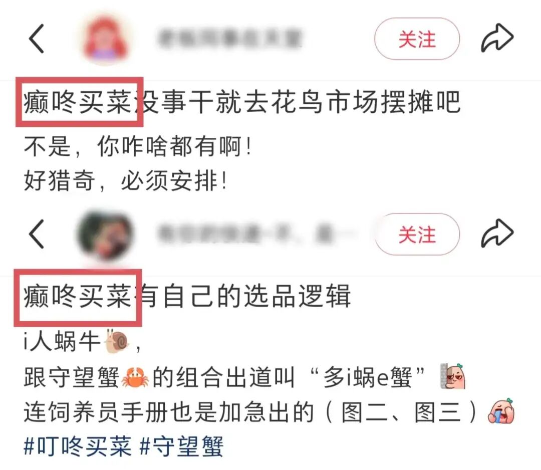 叮咚买菜的选品没有局限于日常大众内容,文玩玉米、水产动物、桌面绿植等,精准击中了不同的兴趣圈层。在这些圈子里,本身就有热爱交流、晒图、谈感受的属性,叮咚顺势成为圈层聚集地,给他们提供了内容、话题与晒图素材。