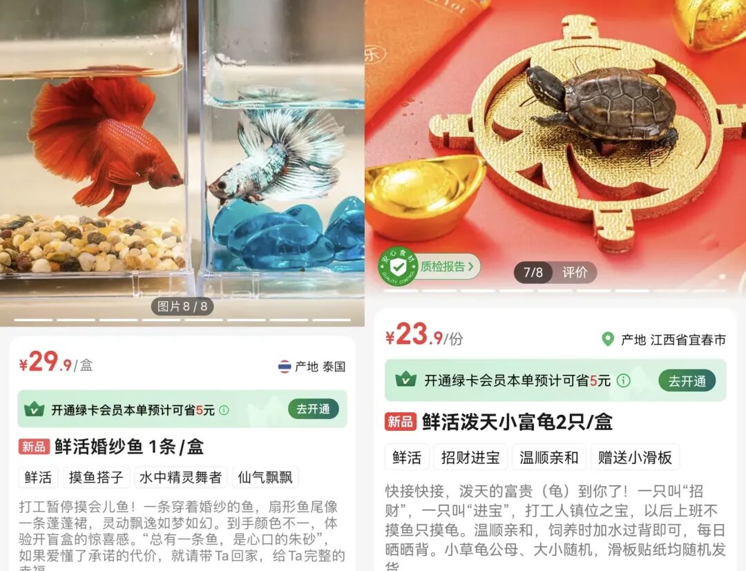 还有摸鱼搭子婚纱鱼,梦幻颜色的扇形鱼尾就像一条蓬蓬裙,摆在工位上,打工人上班摸鱼在此具象化了;泼天小富龟,一只叫招财,一只叫进宝,以后上班不止能摸鱼还能摸龟了。