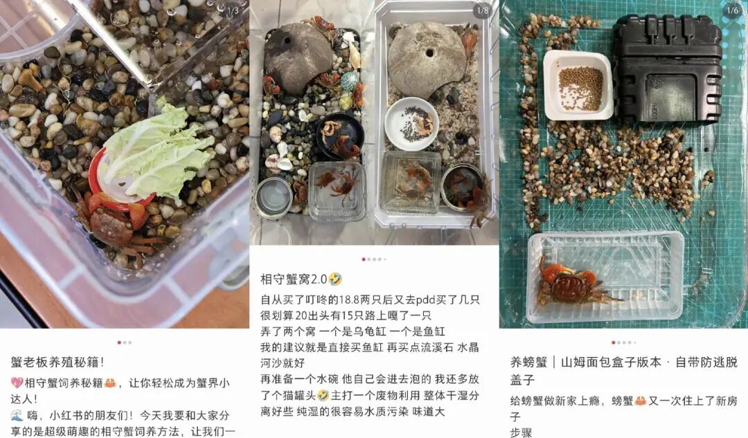 18.8 元两只的定价,还附赠饲养小盒子和鹅卵石, 5 月的蟹类选品本就青黄不接,结果叮咚买菜的这类小螃蟹,被网友当成迷你宠物疯狂种草,不少人下单后自发研究养殖秘籍、防越狱攻略等,成功霸占蟹类人气榜第一的位置。