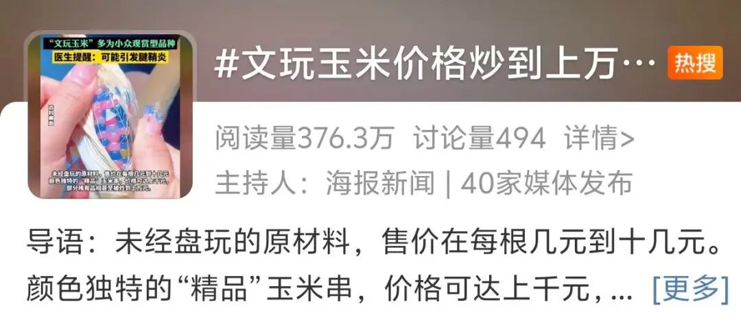 「文玩玉米价格炒到上万元」的话题也冲上热搜,让人惊呼“一根玉米竟能卖这么贵?”