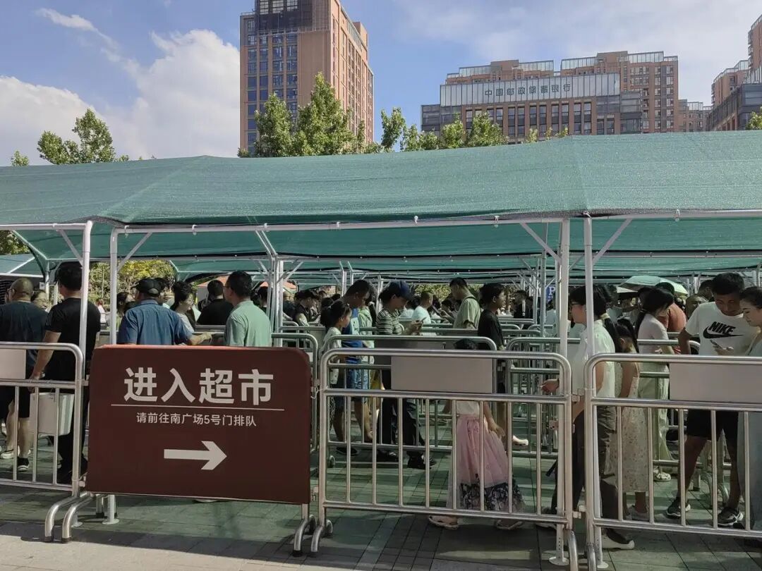 另一边,于东来却自嘲现在的胖东来“不正常”。如今,胖东来已经脱离了“超市”的本来样貌,变成一个景点。我们在工作日下午实地探访了天使城店,进场要排队几小时,内部挤得购物车都推不开,所谓的体验大打折扣。