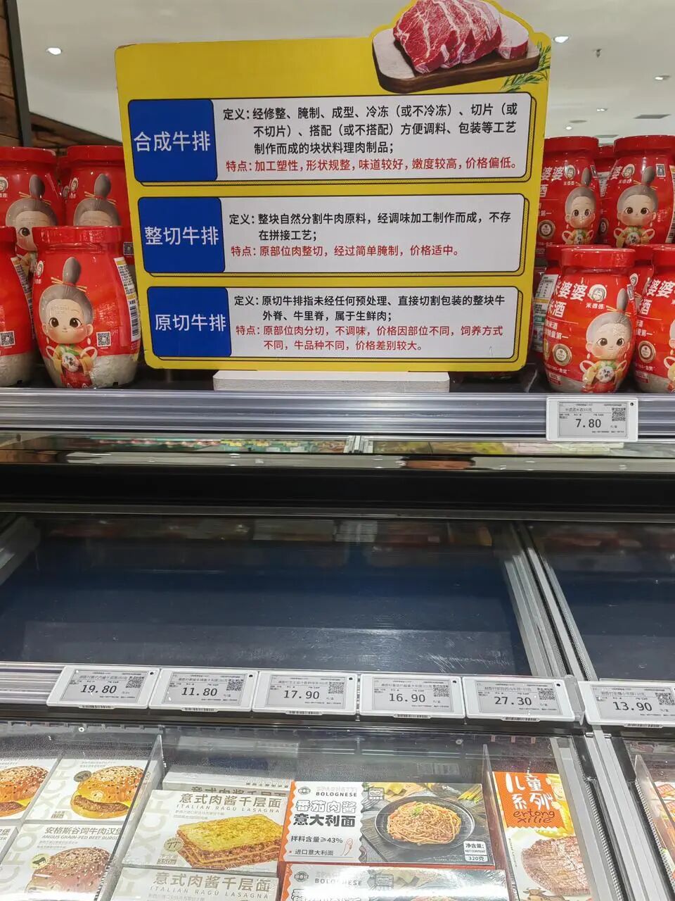 胖东来不仅教顾客怎么选商品,还直接提示合成牛排、整切牛排、原切牛排的差别,避免商家的文字游戏误导消费者。如果对质量不满意,可以无条件退换货,哪怕商品已经拆开使用。