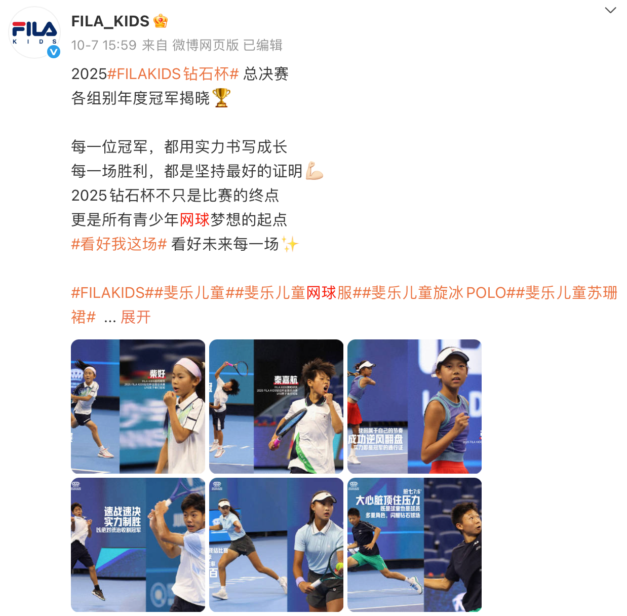 FILA KIDS钻石杯青少年网球挑战赛 图源:微博