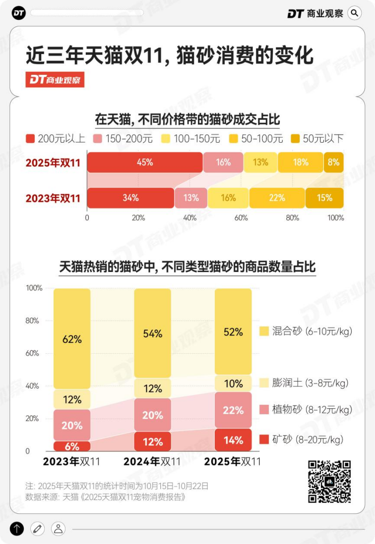 以猫为例,价格更贵的猫粮和猫砂,都卖得更好了。