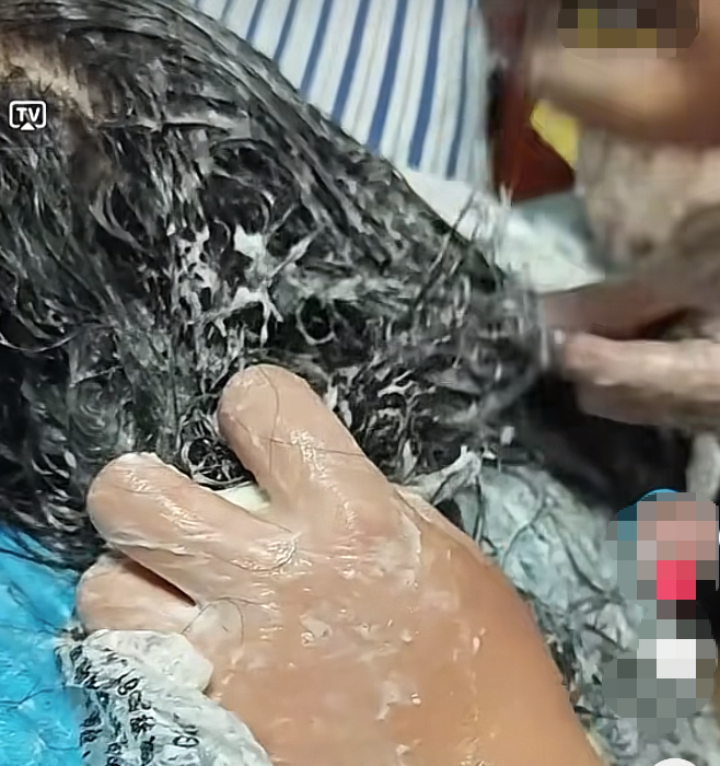 11月18日,晚上6点多到12点多,理发师和其余几位工作人员不断涂食用油,用掉好几瓶护发素,一点一点将她打结成团的头发梳开。第二天,理发师发视频称,经过6小时的努力,冷美人的头发已经梳开梳顺,发尾还给修剪了一点点。