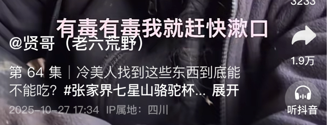 32岁荒野求生选手@冷美人 退赛后直播洗头,吸引了10万网友在线观看。