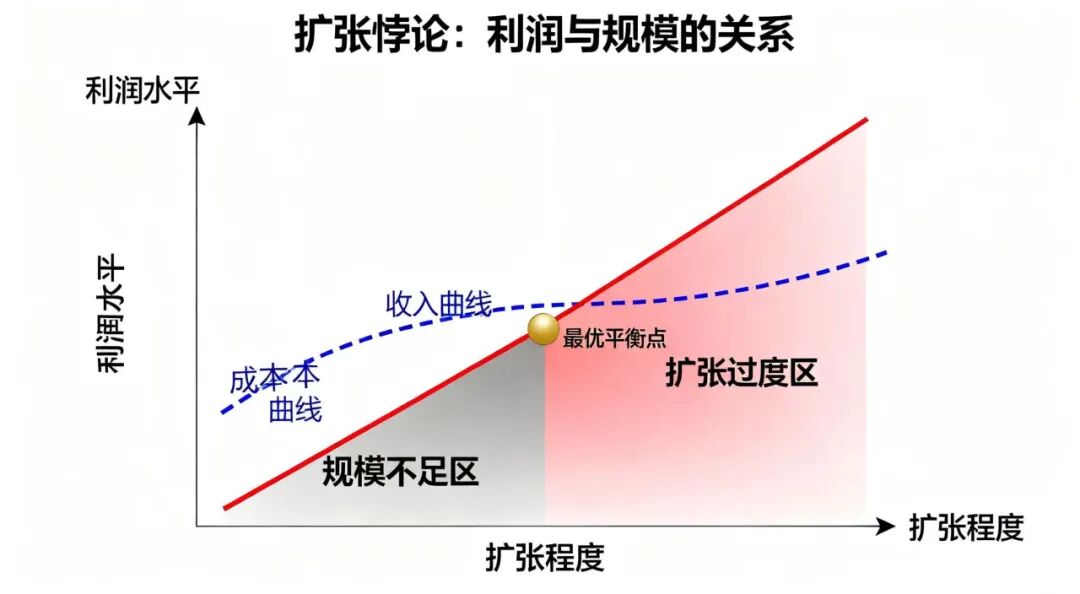 于是,扩张悖论出现了:不扩张会被对手吞噬,扩张则大概率陷入亏损。