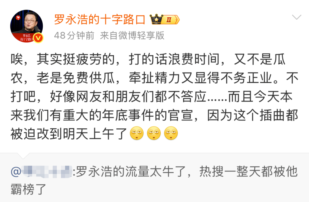 另一边,罗永浩也直言“挺疲劳的”,“重大官宣被迫改到第二天上午了”。