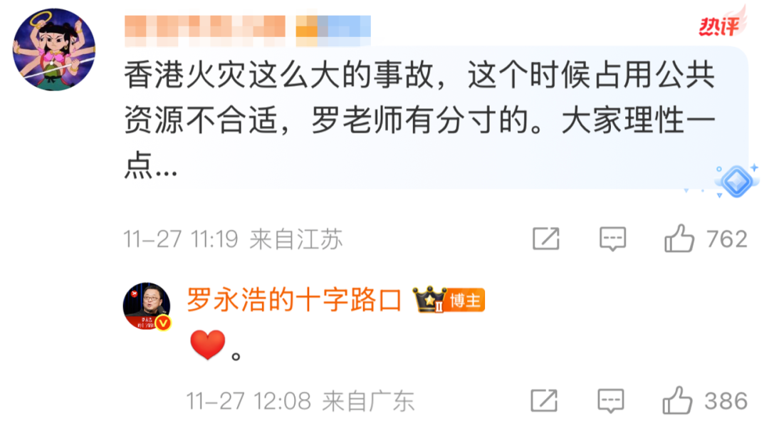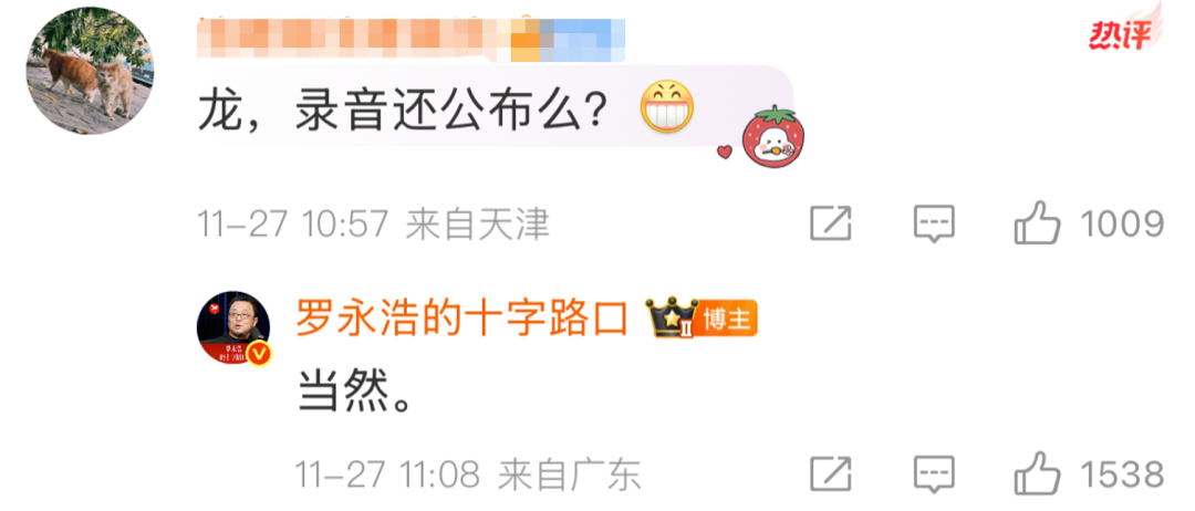 有网友在评论区问,录音是否还会公布,罗永浩回复“当然”,似乎有意避开香港火灾事故这一节点,避免占用公共资源。