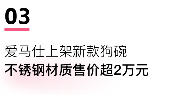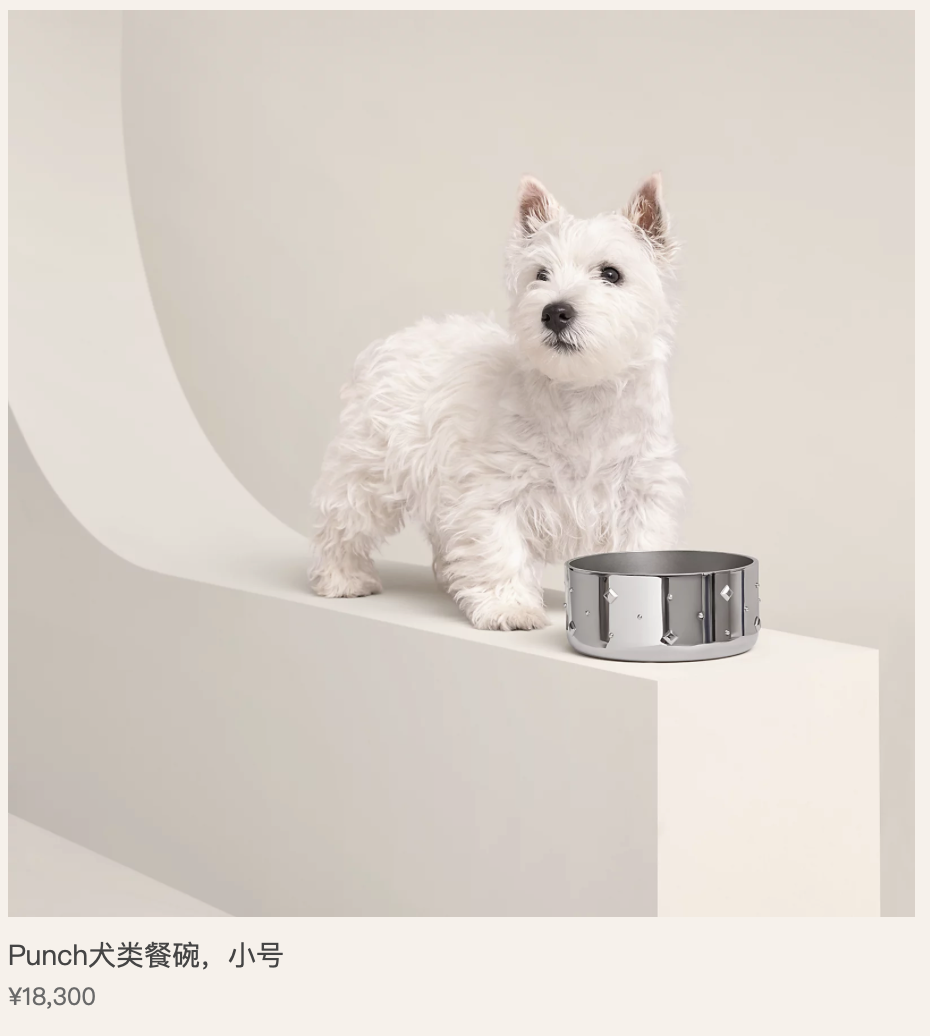 这款不锈钢 “狗碗”的灵感源自Punch系列,由 法国制造,可进洗碗机。不过,爱马仕推出的人吃饭的碗,价格在2000至3000元不等。狗碗与人碗,一高一低接近10倍的价差。
