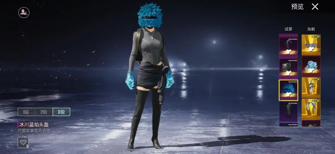 联名款3级( 防御系数最高)头盔“冰川蓝焰头盔”