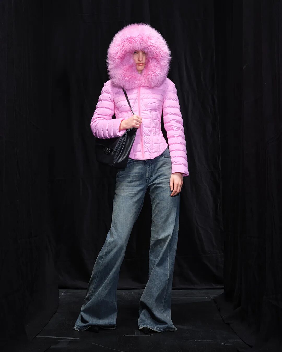 这是游戏《绝地求生》第一次与时尚品牌合作。其中,“粉色羽绒服配牛仔裤”来自巴黎世家冬季25系列的秀场造型。