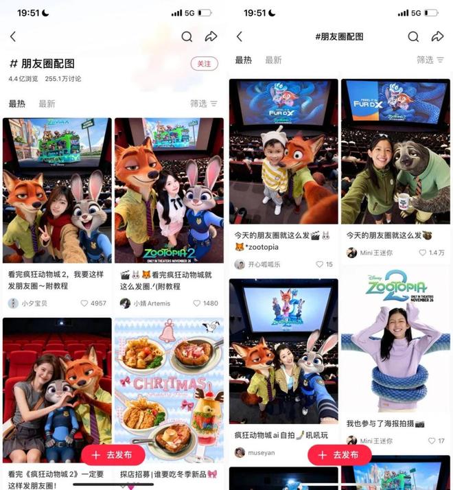 在#疯狂动物车2ai合影、#和朱迪尼克合影、#ai合影、#疯狂动物车 等多个话题,均有大量自拍配图,相关话题超过千万。