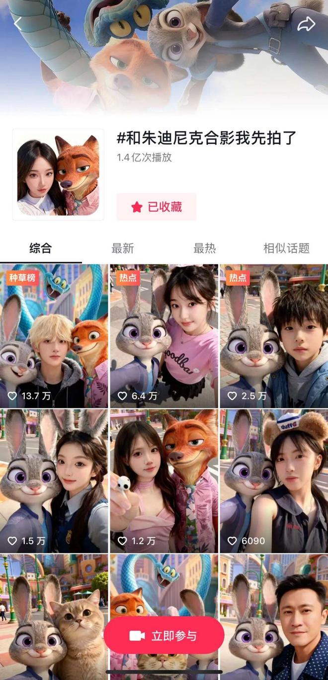 在抖音,和#疯狂动物城2AI合影#的相关话题播放量,接近4亿。