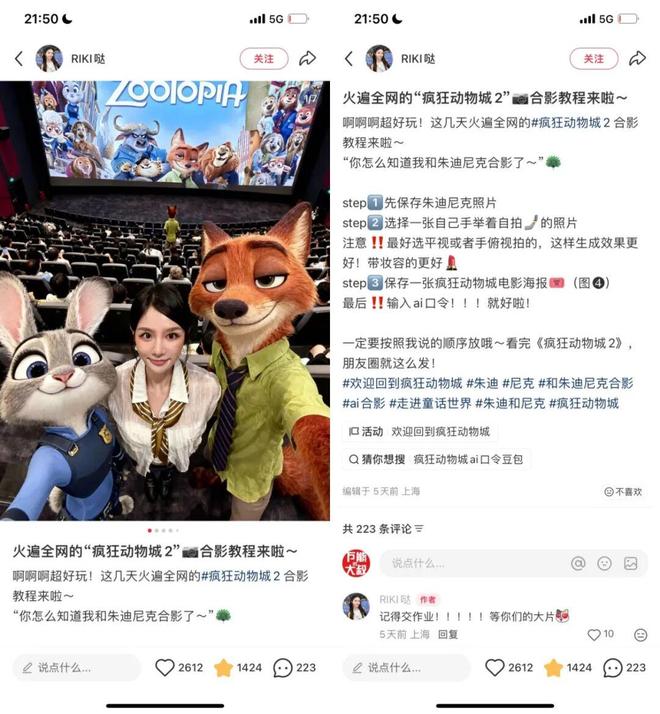 很多博主的AI合成教程,一上来就是:看完《疯狂动物城2》电影,朋友圈该这样发!