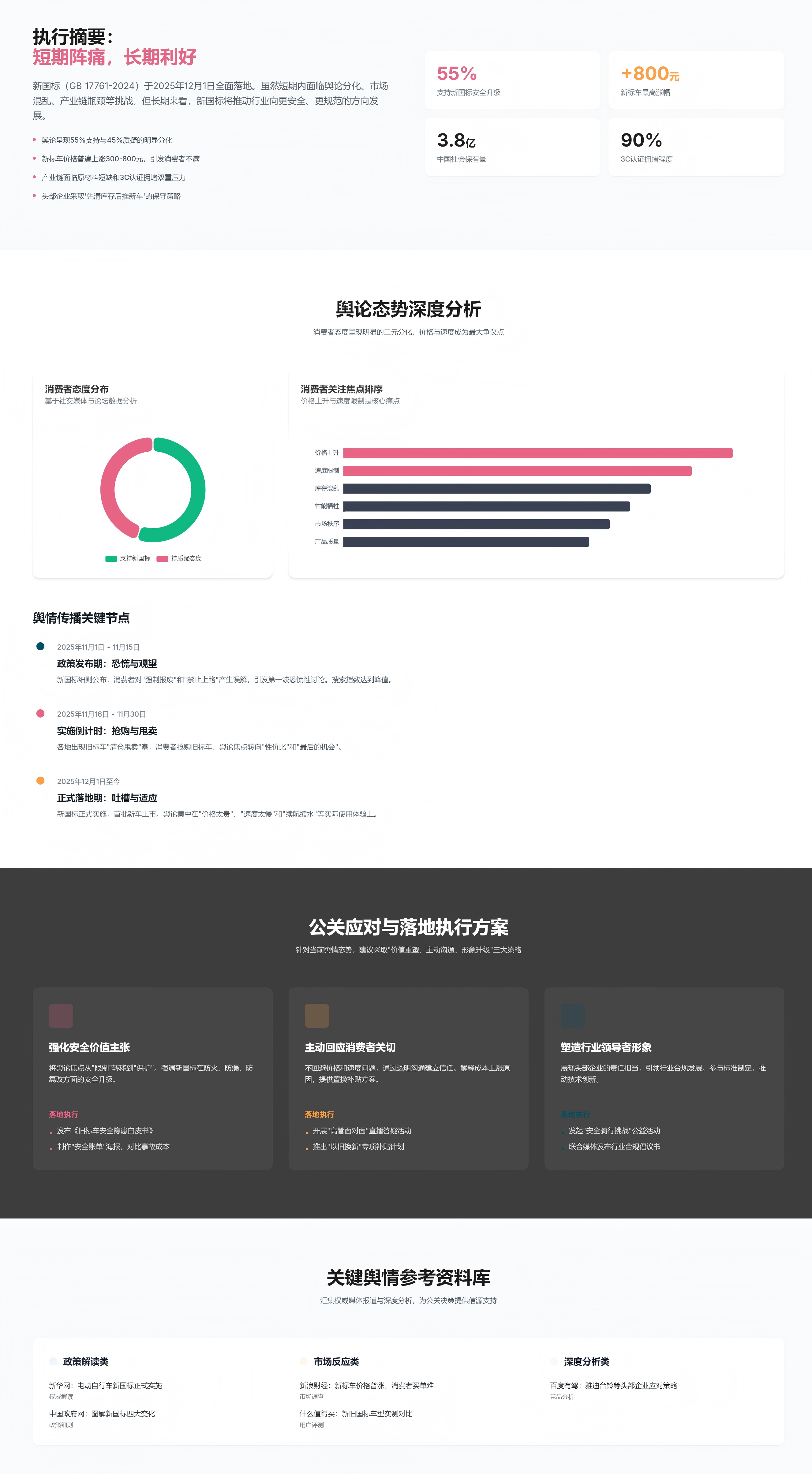电动自行车强制性新国标(GB 17761-2024)于2025年12月1日全面落地实施。梅花数据制作《电动自行车新国标落地舆论分析与应对建议》,深度解析“史上最严新国标”落地后的市场震荡、舆论分化与企业破局之道。