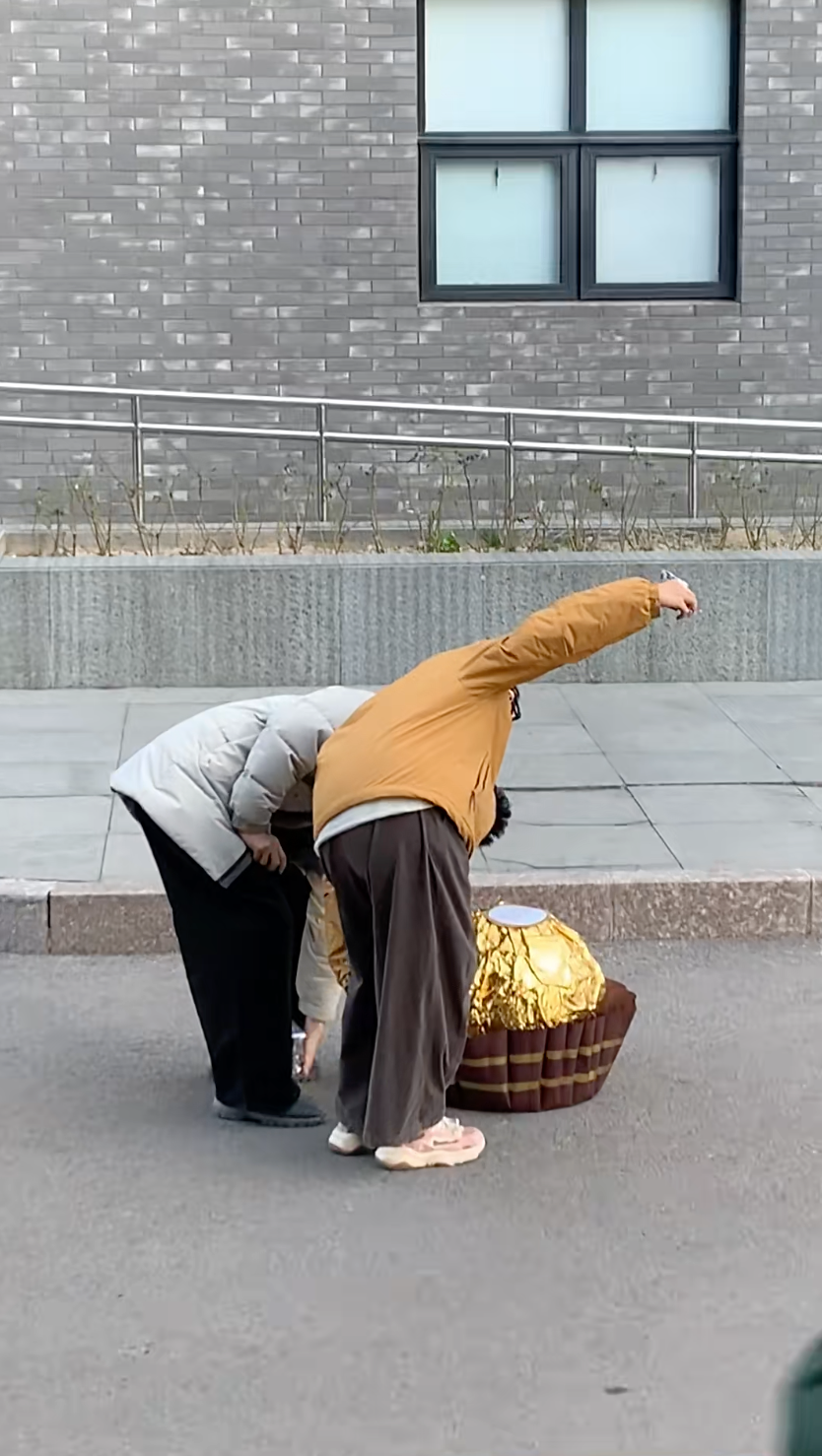 “以假乱真”的好玩创意吸引许多网友前去打卡合照,创作者本人也在现场发放费列罗巧克力当“饭撒”。