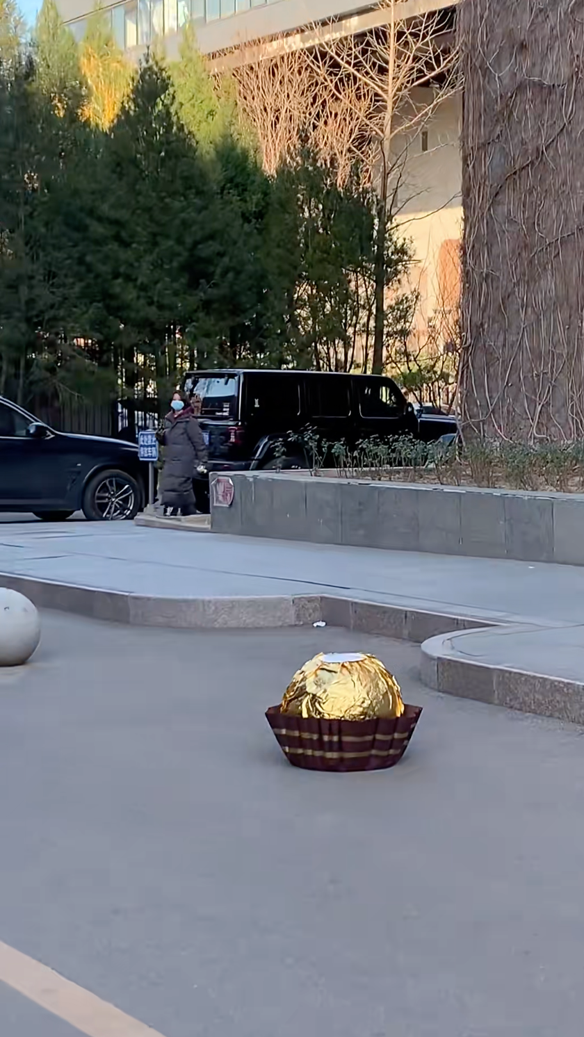 一只巨大的金色费列罗巧克力,让平平无奇的街道亮了起来。
