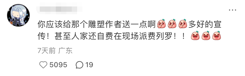 还有网友认为,费列罗应该给雕塑作者送一点巧克力,毕竟人家是自费在现场送费列罗。