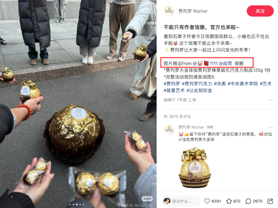 于是,费列罗官方也借这一波热度下场与网友互动。费列罗在小红书平台给“饭撒”加码,挑选幸运网友赠送巧克力。