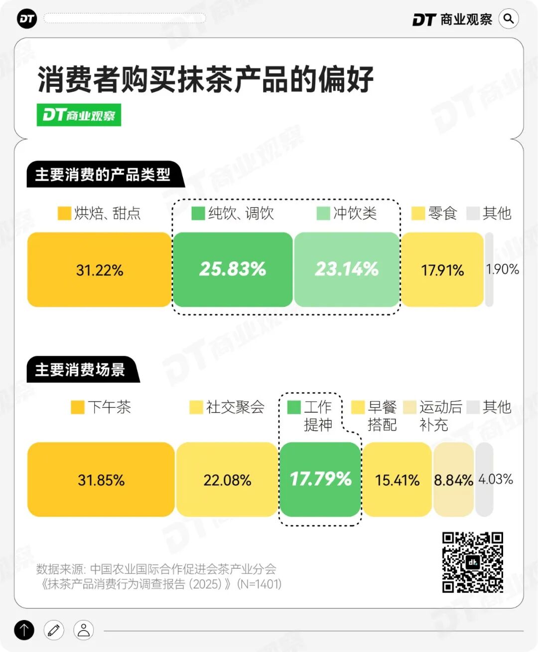 参考今年9月发布的《抹茶产品消费行为调查报告(2025)》,有25.83%的消费者主要会购买抹茶纯饮、调饮,还有23.14%的消费者主要购买抹茶冲饮。