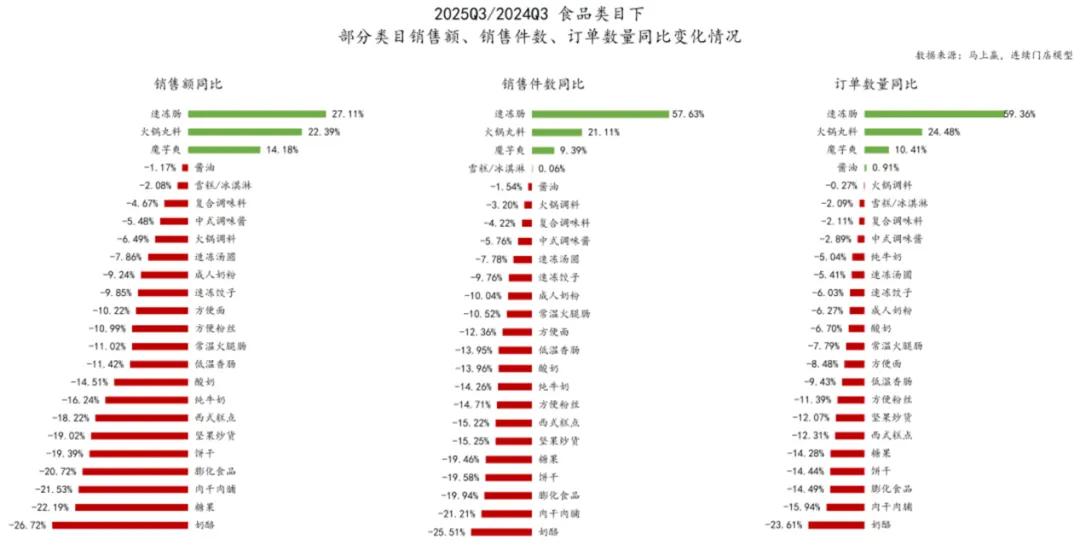 速冻肠、火锅丸料、魔芋爽 是少数在销售额、销售件数、