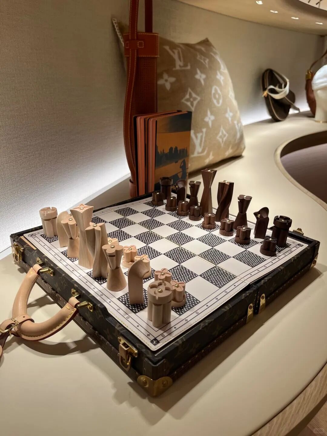 这是LV第N次推出国际象棋产品。早在品牌创立之时,就已制作出类似的折叠棋盘箱,方便欧洲贵族在长途火车或轮船旅行中消遣。