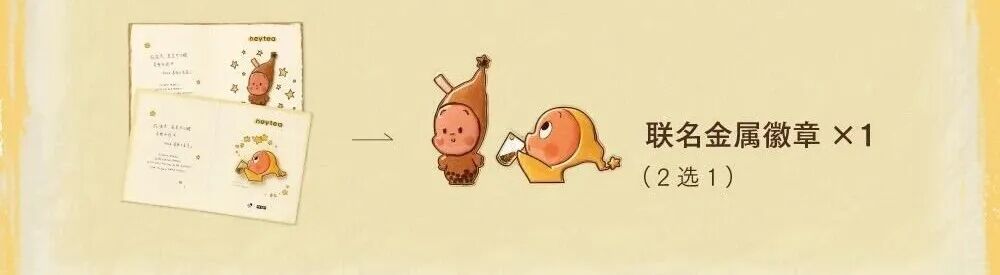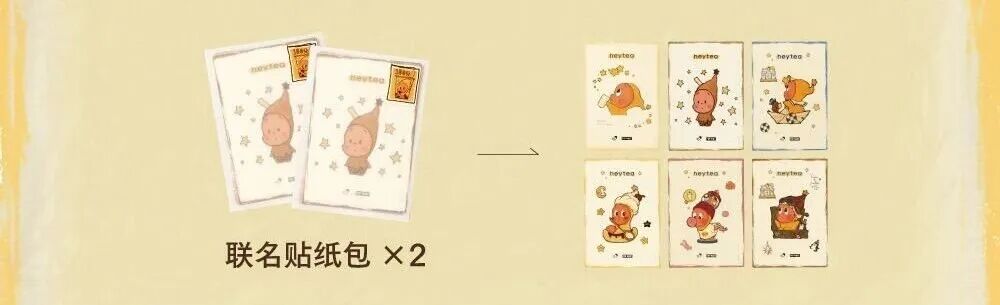 联名周边有星星人贴纸、金属徽章和茶碗。联名物料有灵感小卡、纸杯套和杯袋。有网友称,与星星人的合作让喜茶包装变彩色了~