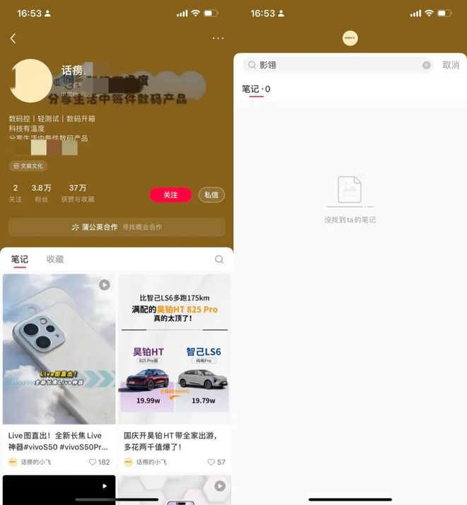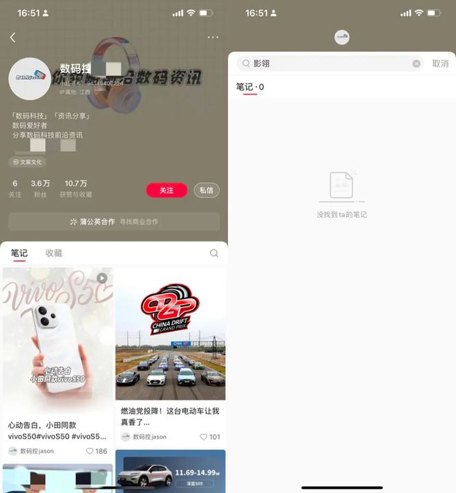粉丝均在2到4万之间,在小红书已经不错了,看主页接了不少“种草”广告,但影石法务截屏里的“雷同”帖子,目前都搜不到了。