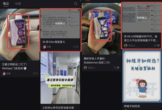 2、发布“雷同内容”的小红书KOC们,竟然都去同一家医院整了牙,垫了鼻,抽同一款电子烟,还准备去看同一场演唱会!