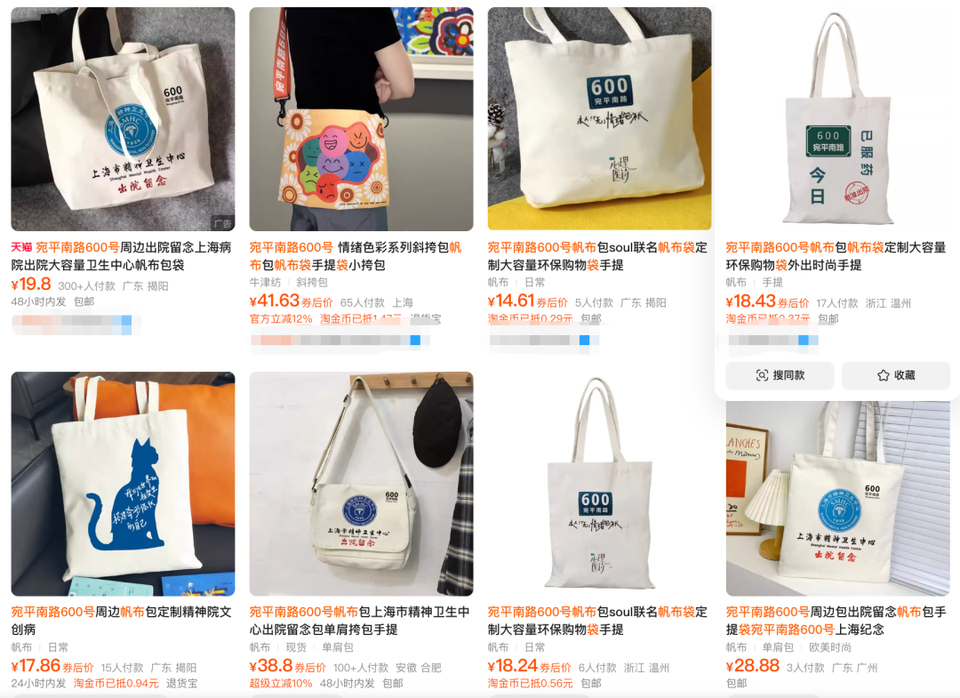 年轻人出门背着“宛平南路600号”的出院留念帆布袋,并不是真的在提示别人自己得过精神病而是一种“自嘲式表达”,把职场焦虑、精神压力变成直白的文字符号,穿出门既是个性宣言,也是找到同频伙伴的社交密码。而社交平台的抽象迷因能快速转化为实体产品,得益于产业带的快速响应,让年轻人“刷到即买到”,把线上的快乐延伸到线下。