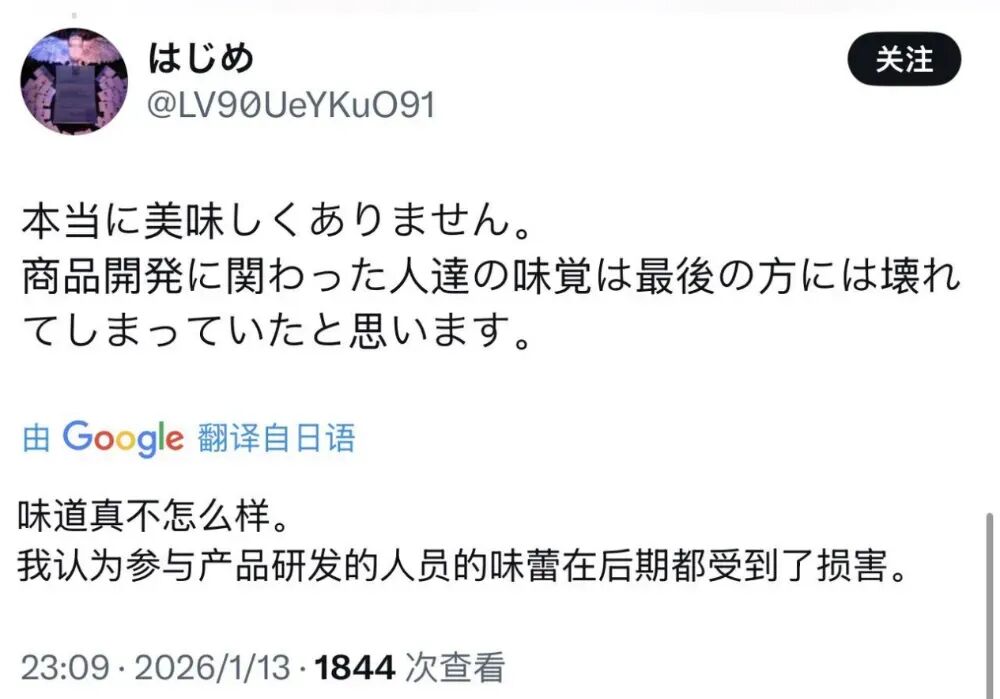 在日本社交媒体上,这款「可饮用麻婆豆腐」同样没有逃过被吐槽命运。比如这位日本网友,甚至关心起了产品背后研发人员的味蕾情况。