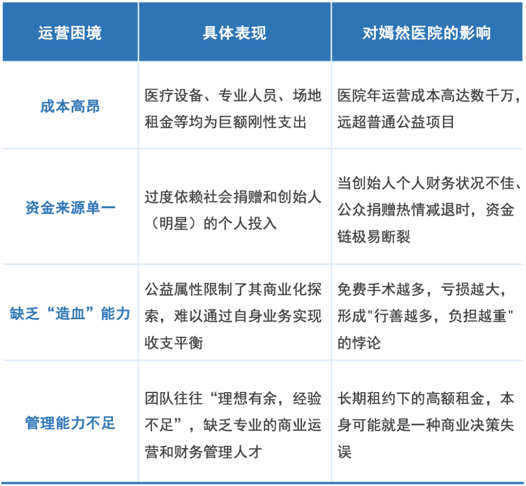 公益机构,尤其是像嫣然这样的重资产医疗实体,其运营困境根植于其商业模式的先天不足。