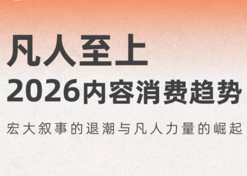 所以,过去几个月,我和团队一直在做一件事: 观察、记录、复盘那些发生在内容消费、品牌营销、文旅生活、科技健康等各个领域的“凡人时刻”,并且做了《2026内容消费趋势白皮书:“凡人至上”》。