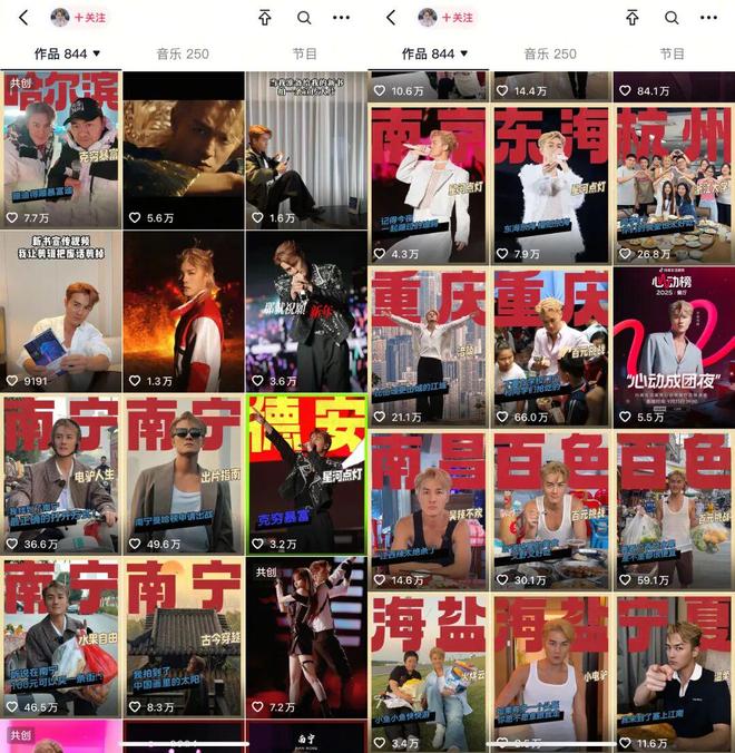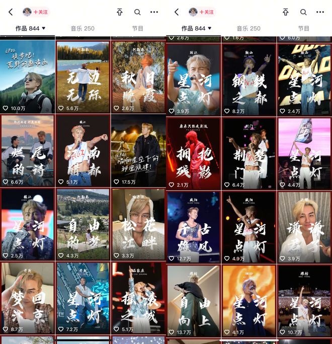 内容围着“歌手”身份,关注和互动的人也以“歌迷”居多,点赞破10万的并不多。