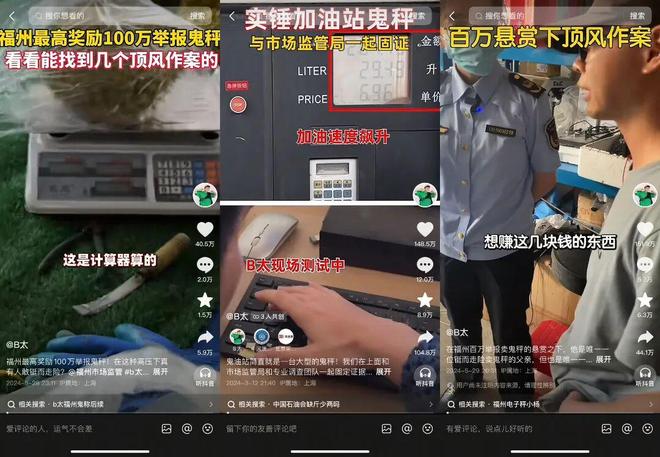 2022年12月到2024年12月,“B太”的人设是“打假博主”,他去了很多地方打假,主要反映问题就是缺斤少两的“鬼秤”问题。