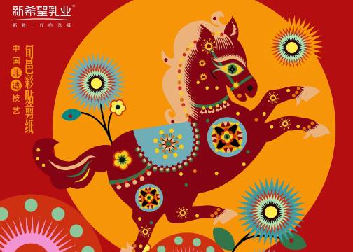 在本届牛奶粉丝节中,新希望乳业携手“旬邑彩贴剪纸”国家级非遗传承人何爱叶老师,创作了以“马”为题的“五福”剪纸形象系列。这组包含“马上有钱”、“马上健康”、“马上享瘦”、“马上高分”、“马上奔富”主题的视觉作品,构建起一套独特的“新年祝福语言体系”,并应用于新年系列窗花周边赠予用户。