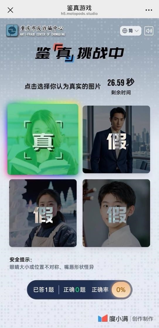 重庆市反诈骗中心和度小满共同推出的鉴真H5小游戏