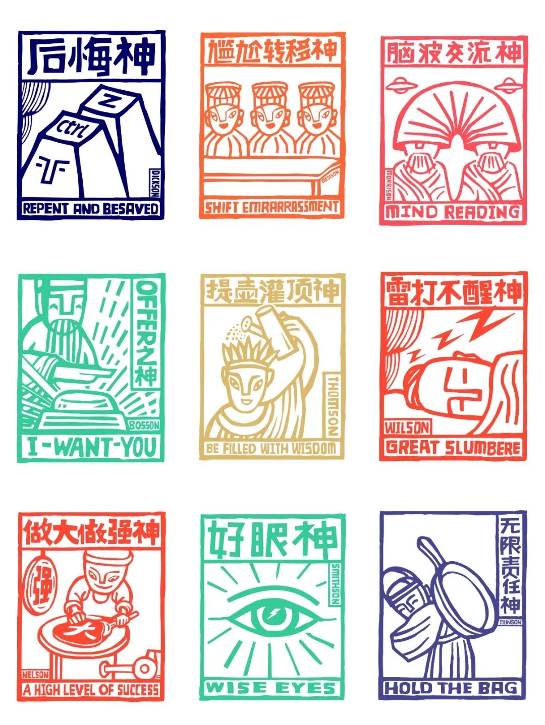 在过去,甲马上印的都是财神、五谷之神、平安神这些民间传统神明。而走进文创市场后,上面的图案也摇身一变,化身为更符合年轻人体质的“DDL神”“不劳而获神”“一不留神”等Z世代神明。