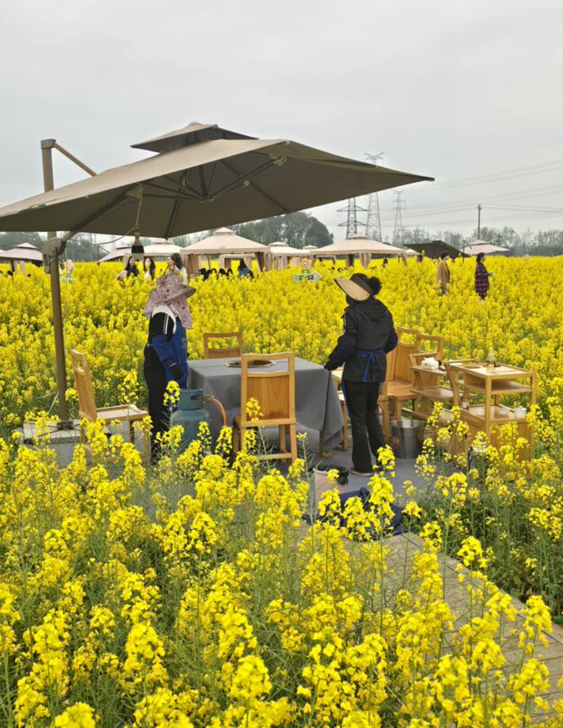 多元业态的组合延伸,也显著拓宽了田野餐饮的市场覆盖范围。从花海下午茶、围炉煮茶,到田园私房菜、田野烧烤,各类产品精准匹配家庭出行、团体宴请等不同客群需求。多种经营业态的叠加还能有效拉长消费时段,实现从午后到傍晚的全时段营收覆盖,单店盈利能力随之提升。