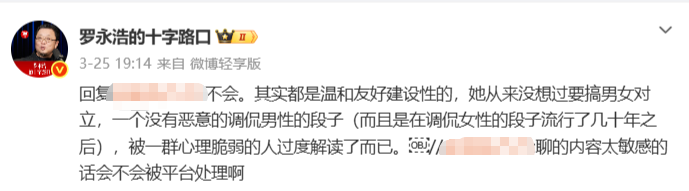 在节目预告引发争议后,罗永浩并未选择低调回避,而是在评论区逐一回怼各类反对声音,还直言要拉黑所有极端“普信男/女”网友,全程保持强硬对抗的姿态。这种立场虽然收获部分支持者的认可与喝彩,但也彻底激怒了持反对意见的群体,直接让舆论焦点发生偏移,从原本的“杨笠脱口秀内容是否存在冒犯”,转向“罗永浩刻意炒作、挑起对立”,使得舆论场彻底割裂,争议彻底失控。