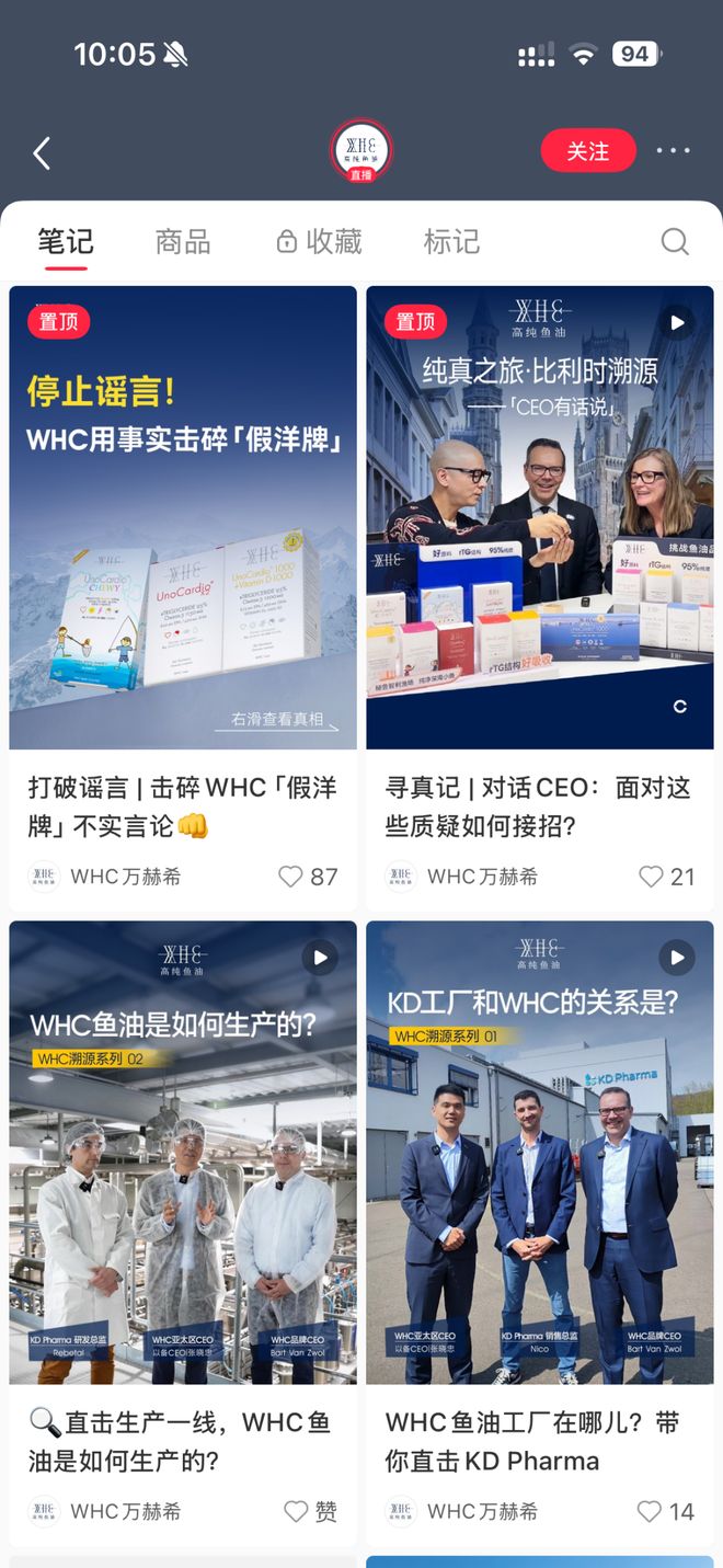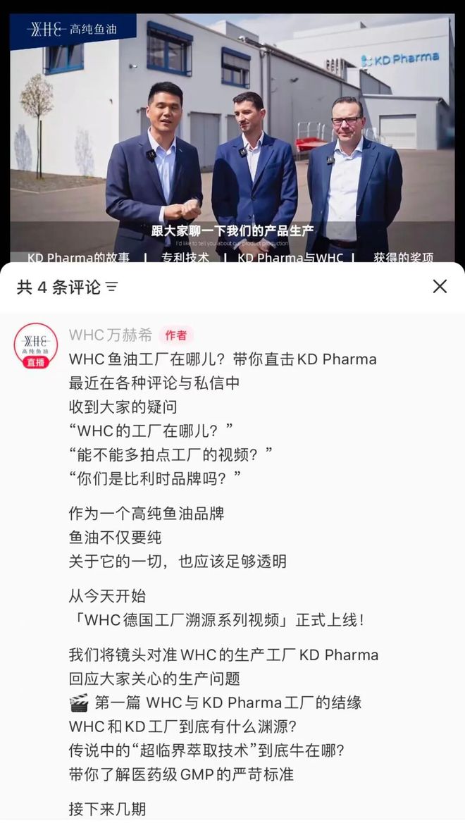 而在最新的几条呢,则是直接以4分钟短视频的方式,展示了WHC的鱼油生厂商在哪里以及是啥样的内容。