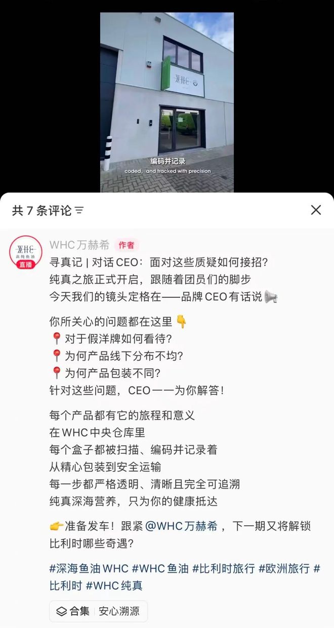 当你还在费劲脑汁在想,到底我该怎么自证清白呢?人家WHC万赫希,已经在行动了,征集用户去比利时溯源!