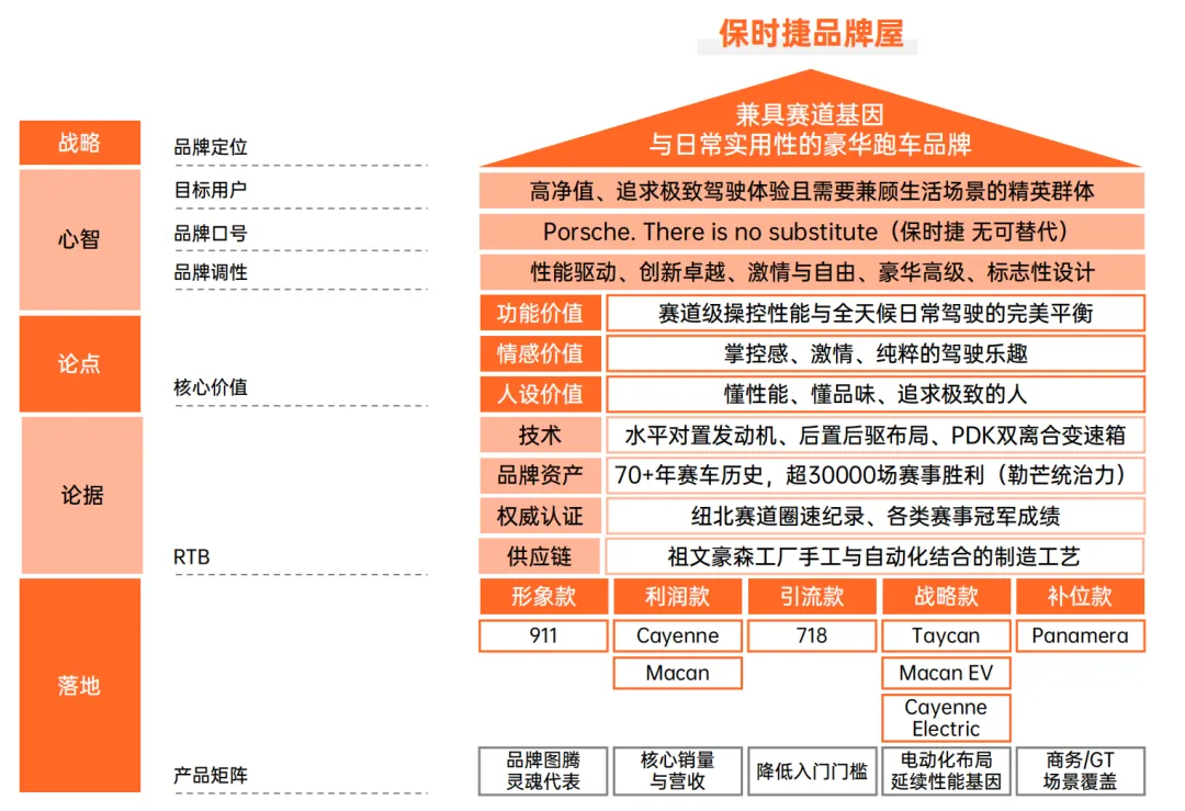 一个卖外形大气+坐在后排的尊贵感,一个卖造型帅气+驾驶位的驾控快乐感。同一大品类,人群不同,整个品牌屋的推导也会很大差别。人群选错,后面就会跟着走偏。