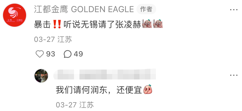 扬州似乎没有出太多明星,于是该商场想到了李白,又听说无锡请了张凌赫,有网友提议扬州“请何润东,还便宜”,也算是紧跟时事了